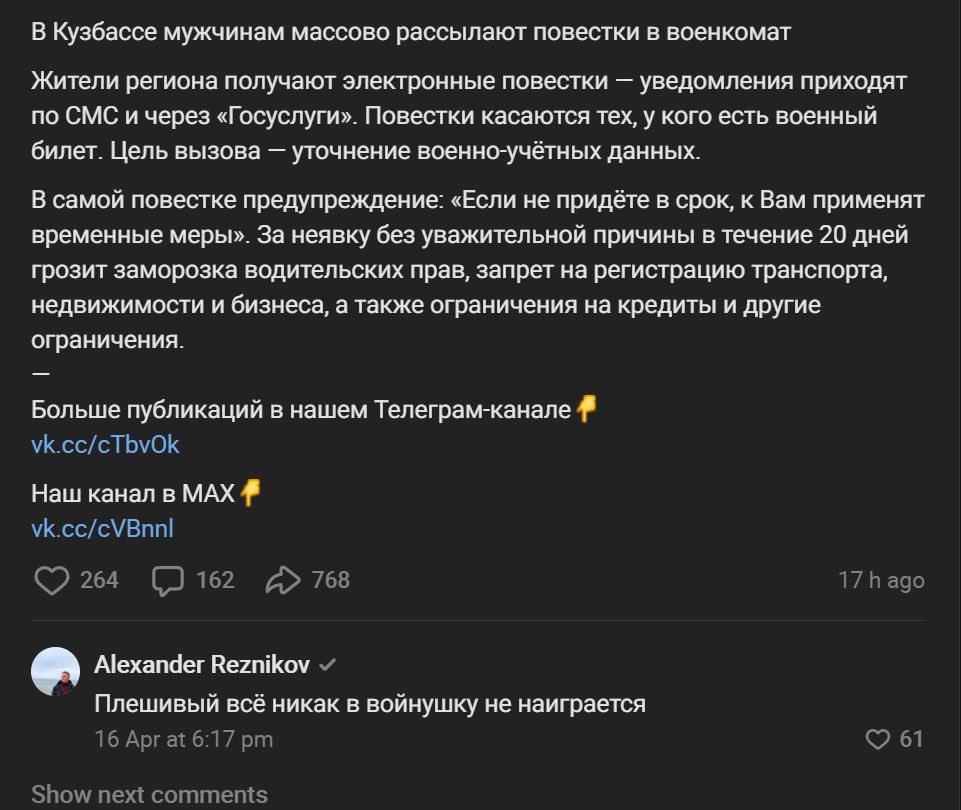 Вывод. По всей видимости, Путин считает войну в заливе своим внезапно открывшимся окном возможностей. Весь мир сейчас прикован к Ирану, излишков оружия нет, Трампу не до него, нефть опять поперла в гору. Да просто подарок небес.